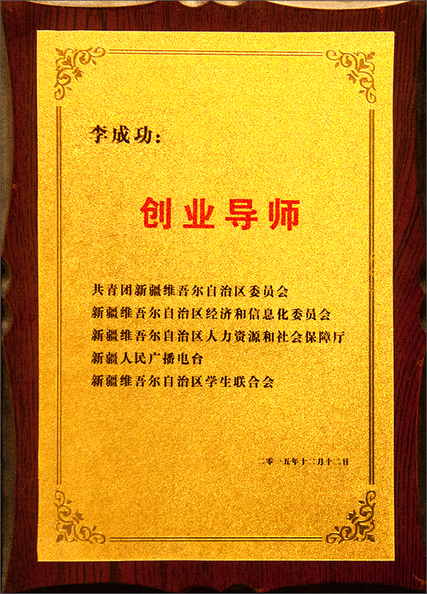 由新疆人民廣播電臺、自治區(qū)團委、自治區(qū)經(jīng)信委、自治區(qū)人社廳及自治區(qū)學(xué)生聯(lián)合會四家單位共同舉辦的新疆第二屆創(chuàng)業(yè)導(dǎo)師校園行活動總結(jié)表彰暨創(chuàng)業(yè)導(dǎo)師頒獎盛典,于12月16日在新疆電臺隆重舉行。對李成功總裁等企業(yè)家創(chuàng)業(yè)導(dǎo)師進行了表彰,頒發(fā)了創(chuàng)業(yè)導(dǎo)師聘書牌匾。