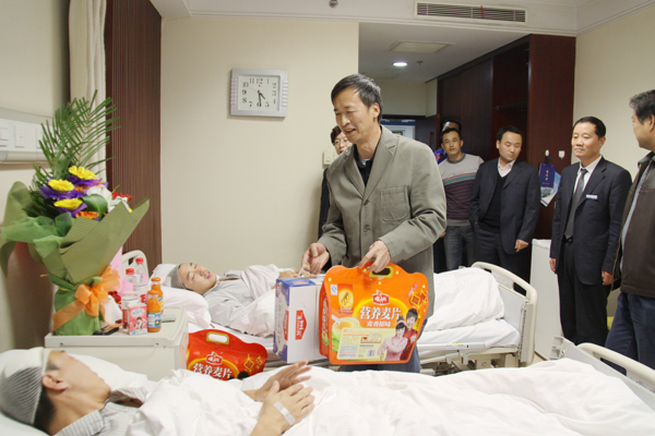 11月16日,烏魯木齊高新區工會主席韓建新一行6人,前往醫學院住院部看望慰問了為保護公司財產,而被昌吉州多斯巴億農業開發有限責任公司打傷的烏魯木齊市華春商貿有限公司7名員工。