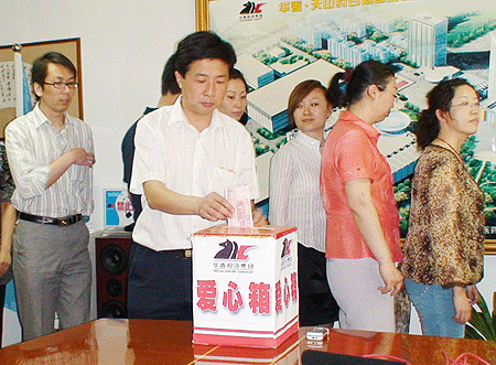 5月13日,新疆華春投資集團(tuán)企業(yè)工會(huì)和黨支部舉辦了向四川省汶川縣地震災(zāi)區(qū)群眾捐款救助活動(dòng),100多名員工在半個(gè)小時(shí)內(nèi)災(zāi)區(qū)捐款17975元。