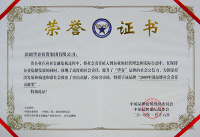 《2009中國品牌社會責任貢獻獎》